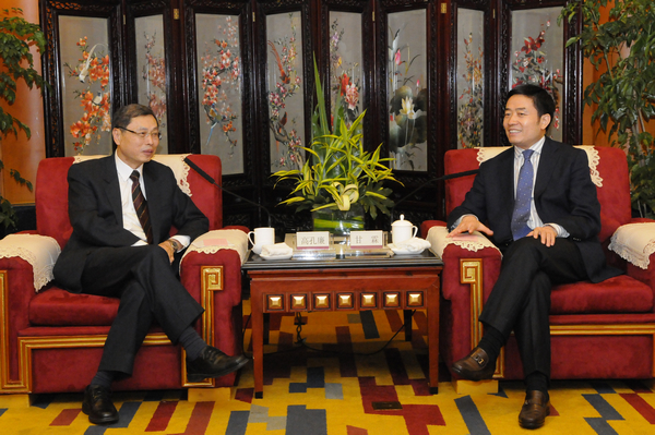 四川省副省长甘霖(右)会见台湾海基会副董事长兼秘书长高孔廉(左)
