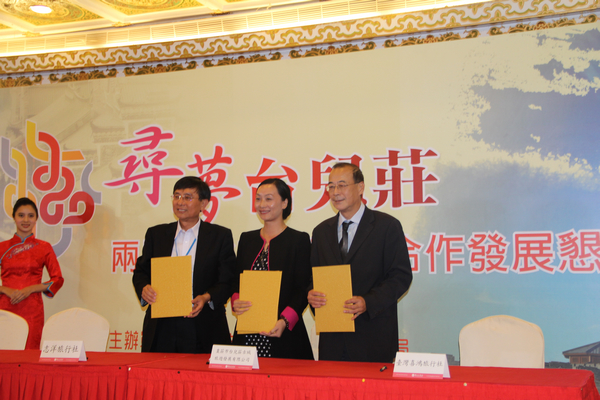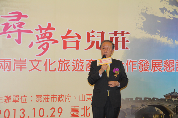 10月29日,寻梦台儿庄——两岸文化旅游产业合作发展恳谈会在台北市圆山大饭店举行。山东省旅游局局长于冲,枣庄市市长张术平,台湾新党主席郁慕明,以及两岸文化旅游行业专家学者、两岸媒体记者等200余人出席。枣庄市委副秘书长、市台办主任毕志伟主持。