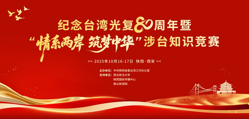 千年丝路连两岸,三秦儿女话统一。10月17日,由陕西省委台办主办,西北政法大学、陕西国际传播中心、群众新闻网协办的“纪念台湾光复80周年暨‘情系两岸 筑梦中华’涉台知识竞赛”在西北政法大学举办。省委常委李明远,省委台办、省政府台办主任姚金川,西北政法大学校党委书记赵万东,西北政法大学校长范九利等出席活动。