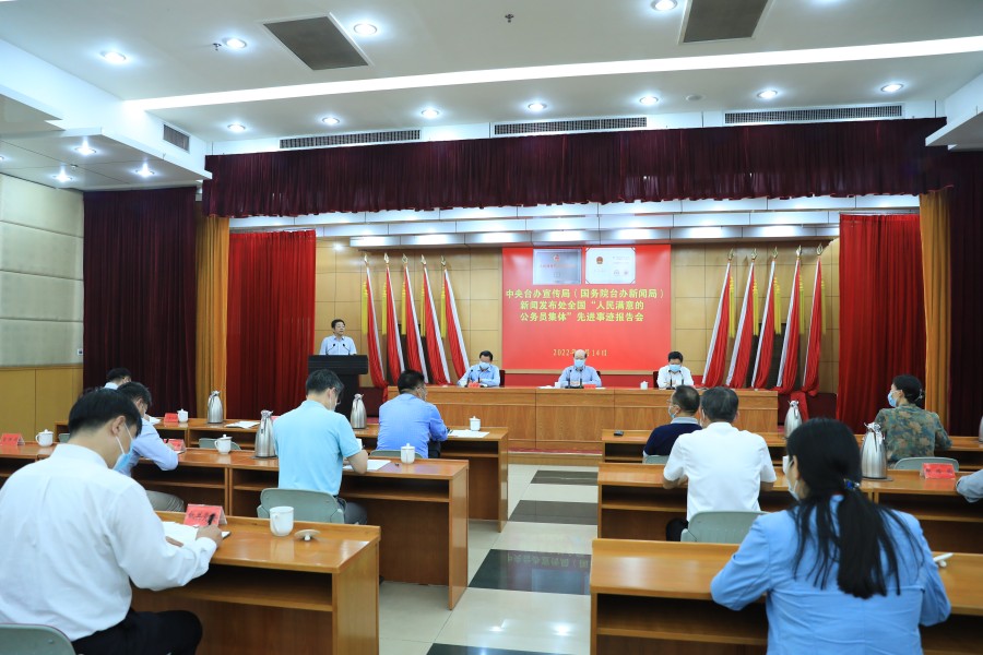全国“人民满意的公务员”和“人民满意的公务员集体”表彰大会8月30日在京举行,中央台办宣传局(国务院台办新闻局)新闻发布处获全国“人民满意的公务员集体”称号。9月14日下午,中央台办召开全国“人民满意的公务员集体”先进事迹报告会。会议由中央台办主任刘结一同志主持,副主任龙明彪、潘贤掌同志,机关全体党员干部、事业单位班子成员及党支部委员参加。驻部纪检监察组副组长陈东同志莅临指导。