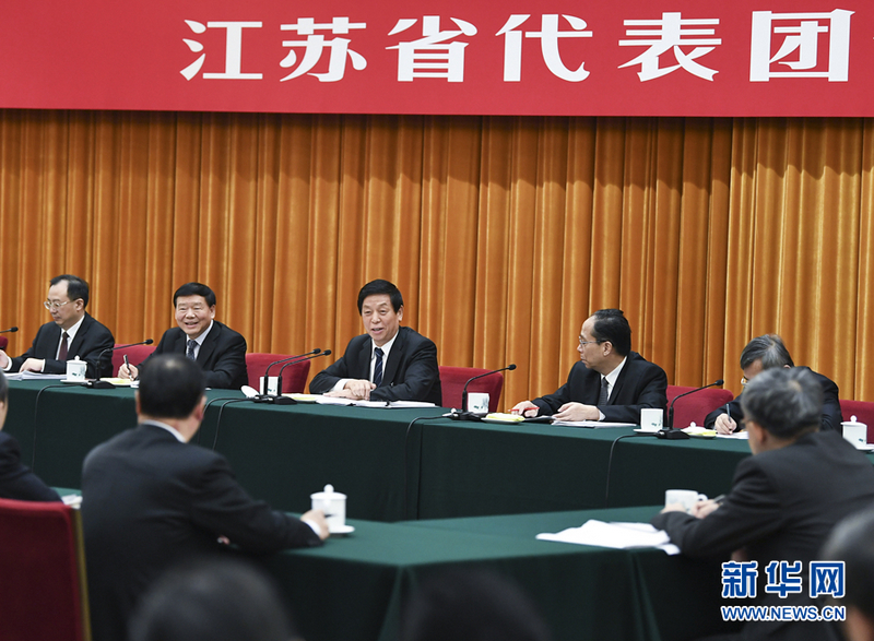3月10日,中共中央政治局常委、全国人大常委会委员长栗战书参加十三届全国人大二次会议江苏代表团的审议。 新华社记者 谢环驰 摄