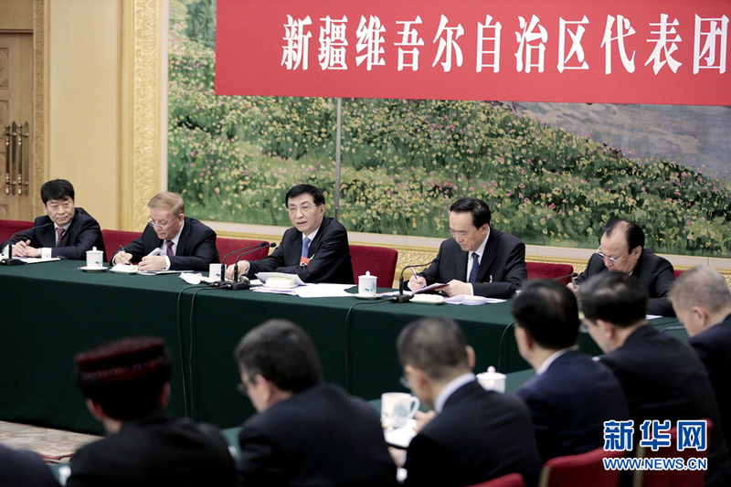 3月10日,中共中央政治局常委、中央书记处书记王沪宁参加十三届全国人大二次会议新疆代表团的审议。 新华社记者 刘彬 摄