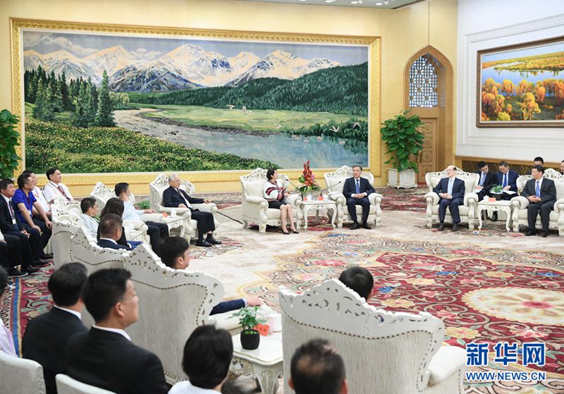 6月28日,中共中央政治局常委、全国政协主席汪洋在北京会见台湾两岸和平发展论坛荣誉顾问高金素梅率领的台湾民意代表和少数民族参访团。 新华社记者 申宏 摄