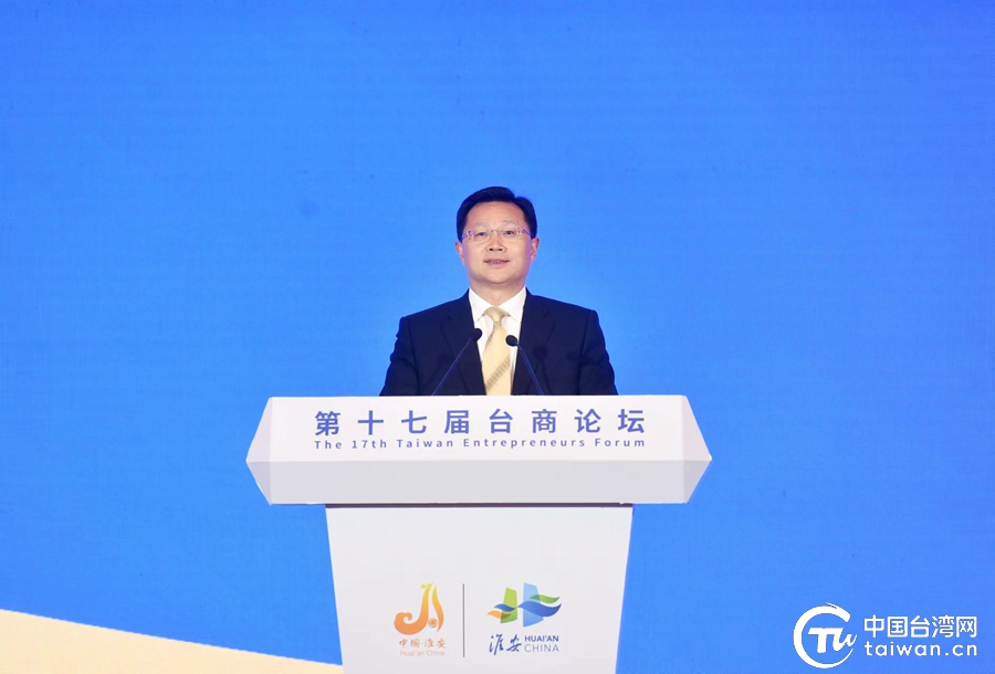 11月15日,中共中央台办、国务院台办副主任潘贤掌在江苏出席第十七届台商论坛开幕式并致辞。