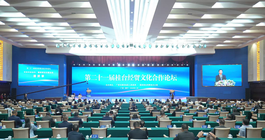 11月11日,中共中央台办、国务院台办副主任潘贤掌在广西南宁出席第二十一届桂台经贸文化合作论坛开幕式并致辞。