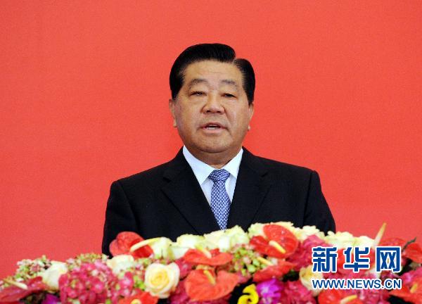 5月7日,第七届两岸经贸文化论坛在四川成都开幕。中共中央政治局常委、全国政协主席贾庆林在论坛上致辞。 新华社记者 饶爱民 摄