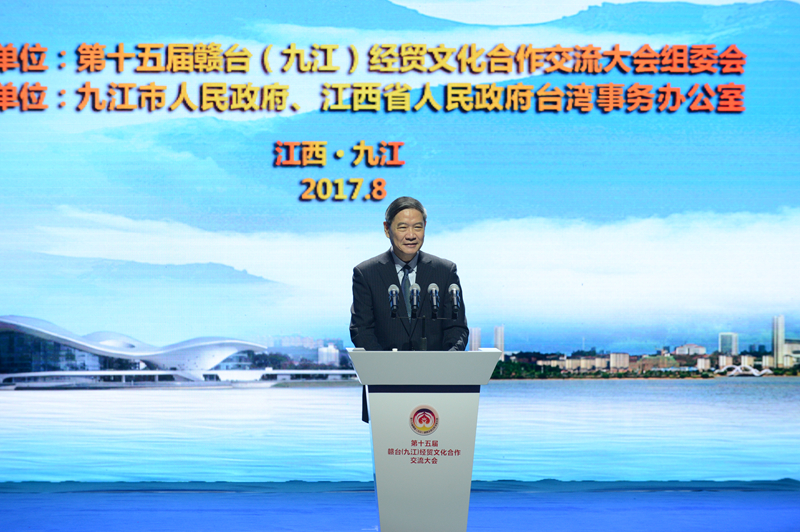 很高兴来到美丽的九江,出席第十五届赣台经贸文化合作交流大会。首先,我谨代表中共中央台办、国务院台办,对本届赣台会的召开表示热烈祝贺,向与会两岸嘉宾致以诚挚问候!