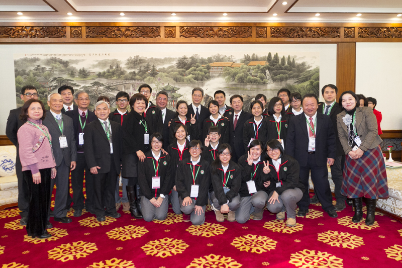 中共中央台办、国务院台办主任张志军10日在北京会见了东莞台商子弟学校叶宏灯董事长率领的毕业班学生“北京文化之旅”参访团一行。