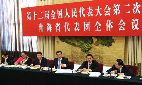 3月6日,中共中央政治局常委、国务院总理李克强参加十二届全国人大二次会议青海代表团的审议。新华社记者 饶爱民 摄