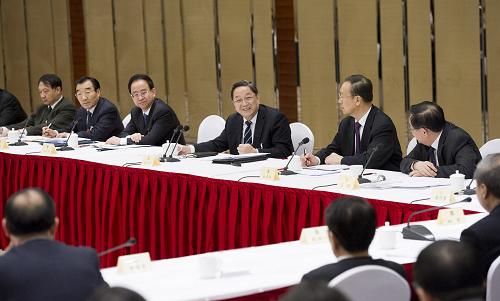 3月6日,中共中央政治局常委、全国政协主席俞正声参加十二届全国人大二次会议台湾代表团的审议。新华社记者 刘建生 摄