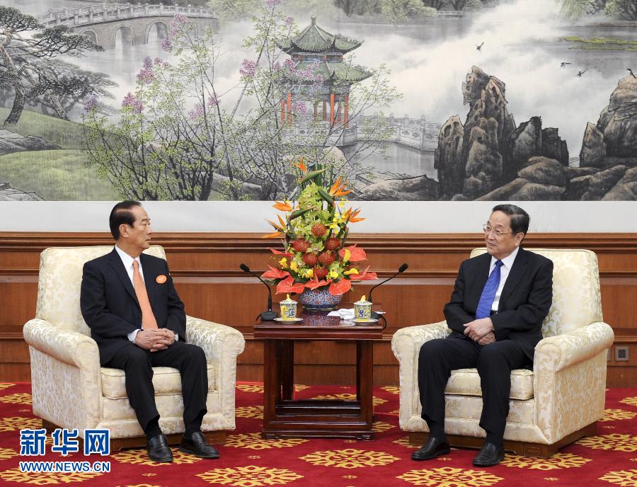 中共中央政治局常委、全国政协主席俞正声今天下午在北京钓鱼台国宾馆会见了台湾亲民党主席宋楚瑜一行。