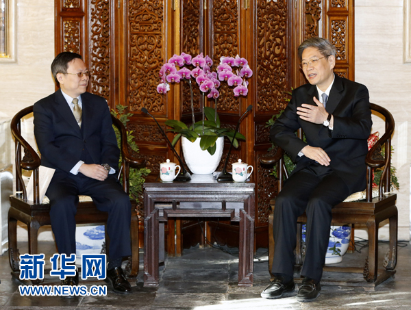 国台办主任张志军与王郁琦会面 双方愿继续努力推进两岸关系和平发展