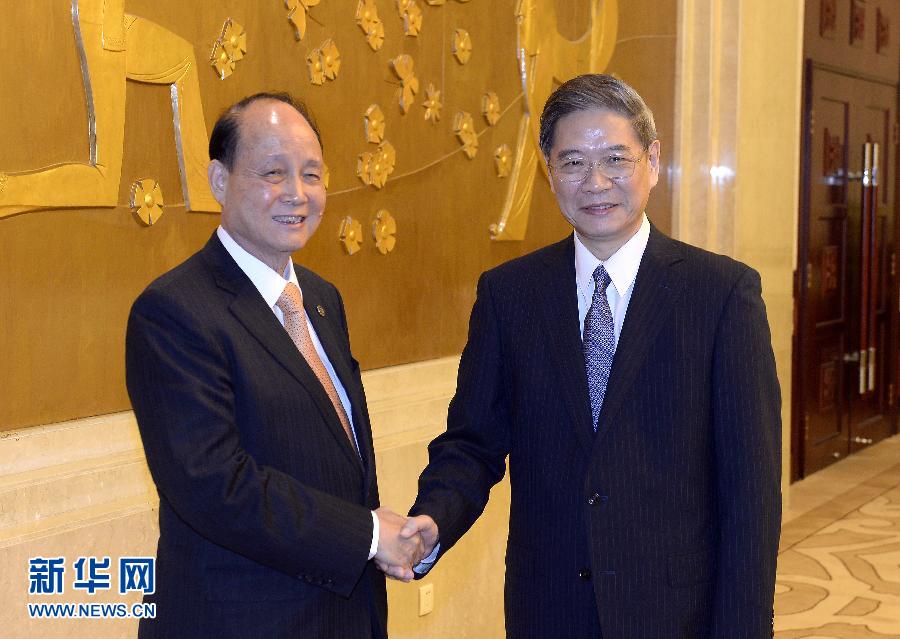 8月25日,中共中央台办、国务院台办主任张志军在福州会见台湾海峡交流基金会董事长林中森一行。 新华社记者武巍摄