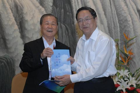 饶颖奇对上海市领导的热情接待表示感谢。宾主互赠纪念品时,他向俞正声赠送了自己编撰的书《两岸和平 ?我心所愿》。