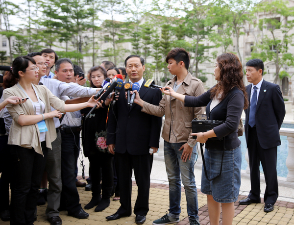 4月26日下午,广西壮族自治区党委书记彭清华结束五天四晚的访台行程,在高雄市与两岸三地20多家媒体见面,对两岸三地媒体持续关注报道广西代表团表示感谢,并发表三点访台感言。