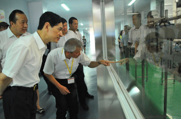 四川省委副书记柯尊平(左二)一行在台资企业统一企业(成都)公司生产车间考察调研