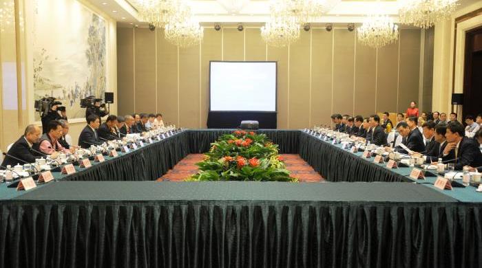 山东省副省长夏耕与富士康科技集团总裁郭台铭一行举行工作会谈