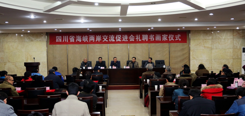 日前,四川省海峡两岸交流促进会“川台书画艺术工作室”成立大会礼聘书画家仪式成功举行,四川省台办主任周敏谦出席并致辞,省台办副主任张军、赵宇、副巡视员杨志学等和来自四川巴蜀中国画研究院的30多位书画家齐聚一堂,共同出席大会。