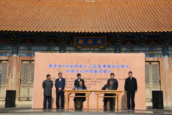 11月3日,第十三届“齐鲁风·两岸情”台湾优秀中学生中华文化研习营在济南府学文庙开营。该活动旨在推动济南、台湾青少年共同传承弘扬中华传统文化,由济南市教育局、济南市台办、济南市文广新局、济南市天桥区政府共同主办。各参与单位负责人及济台两地中学生三百余人参加开营式。