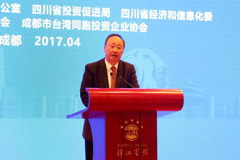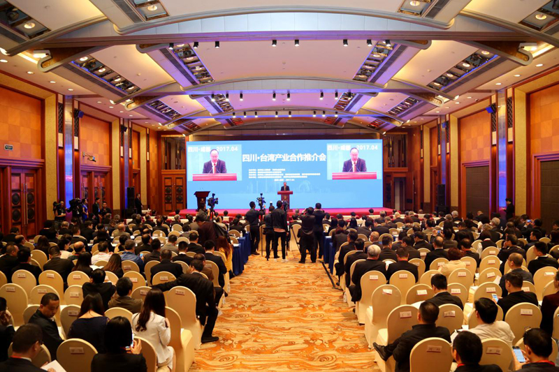 4月26日,作为“2017中外知名企业四川行”的重要专项活动,“四川——台湾产业合作推介会”在成都锦江宾馆举行。国务院台办主任张志军,四川省委副书记、省长尹力,两岸企业家峰会台方理事长萧万长,全国台湾同胞投资企业联谊会会长王屏生出席推介会并致辞。四川省委副书记邓小刚,副省长朱鹤新,两岸企业家峰会台方副理事长江丙坤,两岸企业家峰会台方秘书长陈瑞隆等出席推介会。朱鹤新副省长主持推介会。两岸企业家峰会成员,全国台企联成员,台湾岛内知名企业、重要商协会负责人,部分沿海省市和四川省内台资企业负责人以及四川省市相关部门负责人、企业负责人等共计350多人参加推介会。
