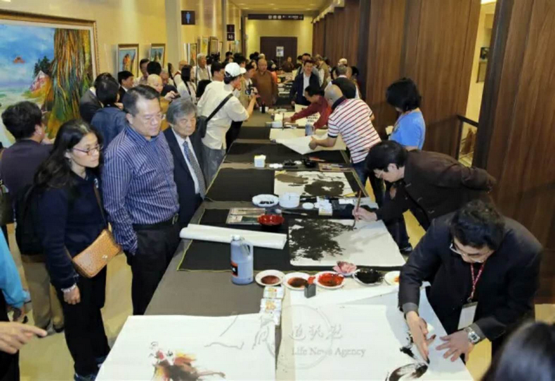 冀台两地嘉宾还一同参观了“纸象万千”河北造纸与印刷工艺展,在“水墨丹青 情系冀台”书画交流笔会现场,共同见证冀台两地书画家泼墨舞丹青,创作主题绘画作品“家”“和”,它们将分别留存冀台两地,为此次活动存记。