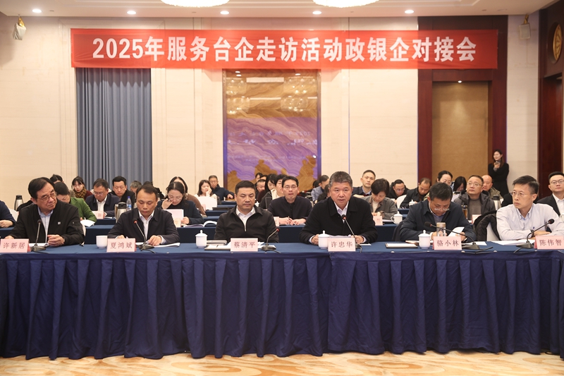 2025年服务台企走访活动政银企对接会日前在南昌举行,活动由江西省台办、江西省地方金融管理局共同主办,旨在为政银企三方搭建对接桥梁,引导金融活水赋能台企发展。省台办主任蔡清平、省地方金融管理局局长许忠华出席会议并讲话。国泰世华银行、玉山银行等台资银行及省内11家银行、证券、保险等金融机构负责人,20家台企负责人和创业台青代表参加对接活动。省台办副主任夏鸿斌主持会议。