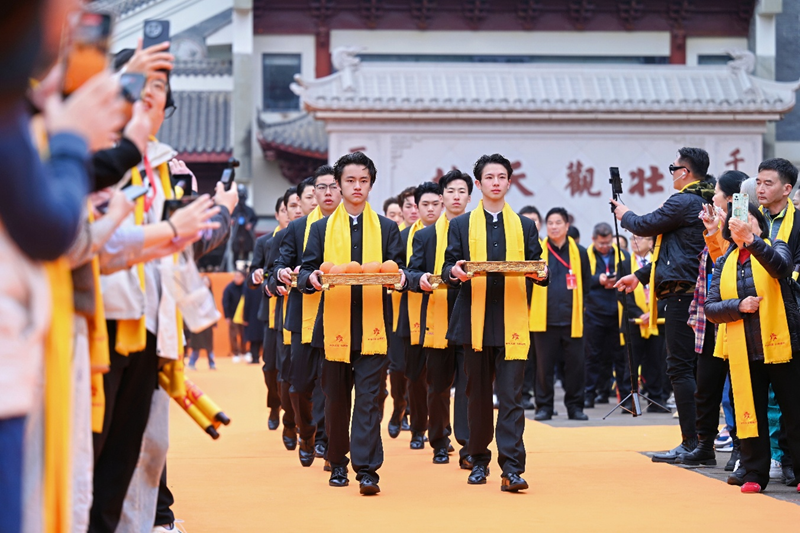 开幕式上,两岸宫观代表互赠信物,象征同根同源的道脉传承与深厚情谊。开幕式后,沿袭古老的庙会传统,三通圣鼓响彻云霄,七曲山大庙正门徐徐开启,丙午年文昌民俗文化活动庄严启幕。活动严格遵循传统“三献礼”规制,并以“六佾舞”贯穿始终,两岸学子身着儒生汉服,恭献书卷,齐声诵读《文昌阴骘文》;两岸各界代表祈愿国泰民安、盛世和谐;两岸嘉宾向文昌帝君敬献花篮,追思先贤懿德。随着恢宏的主题歌舞《颂文昌》响彻祖庭上空,文昌佾舞等民俗项目集中展演,整场活动圆满礼成。