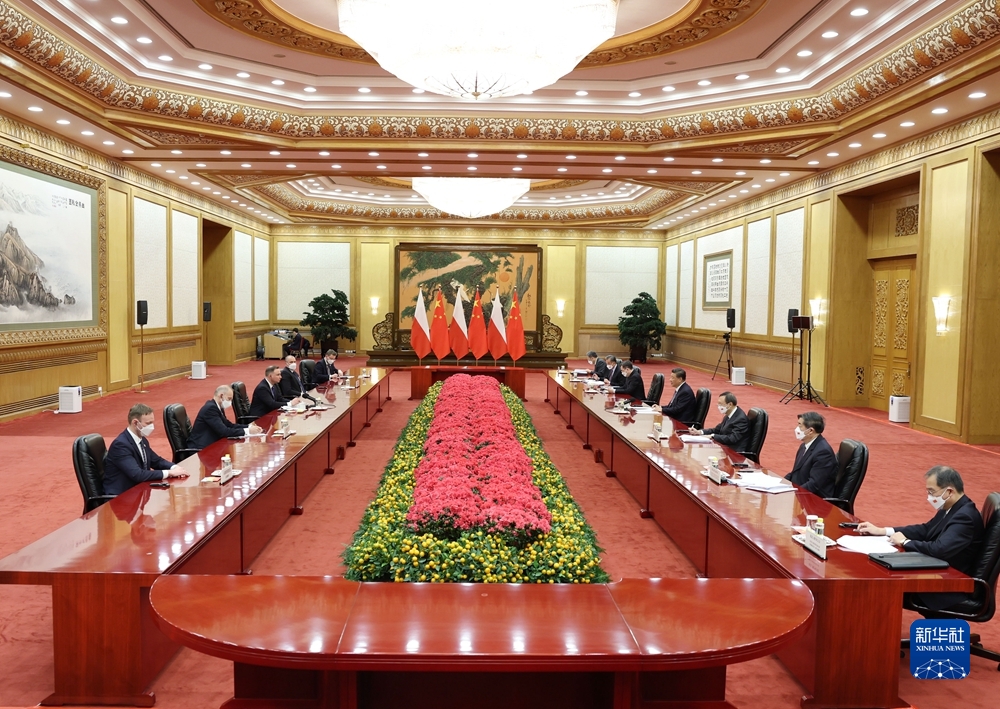 2月6日上午,国家主席习近平在北京人民大会堂会见来华出席北京2022年冬奥会开幕式的波兰总统杜达。新华社记者刘卫兵摄