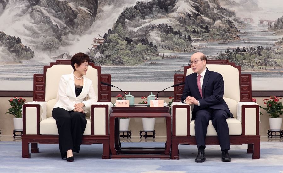 新华社杭州7月23日电 中共中央台办、国务院台办主任刘结一23日在杭州会见了中国国民党前主席、中华青雁和平教育基金会董事长洪秀柱一行。洪秀柱此次系应邀来杭出席第四届海峡两岸青年发展论坛并在大陆参访。