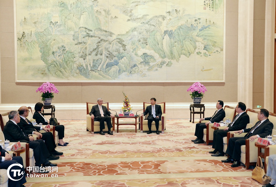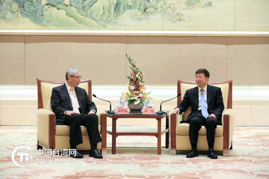 中共中央台办、国务院台办主任宋涛4月18日在北京会见理事长苗丰强率领的台湾工业总会大陆经贸参访团。(中国台湾网 尹赛楠 摄)
