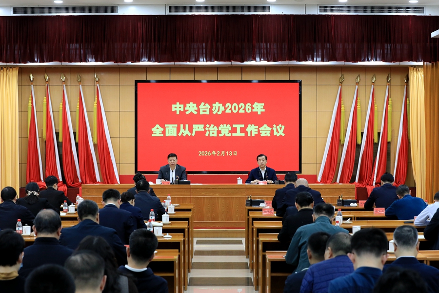 2月13日,中央台办召开2026年全面从严治党工作会议。会议以习近平新时代中国特色社会主义思想为指导,全面贯彻党的二十大和二十届历次全会精神,认真落实二十届中央纪委五次全会精神,深入学习贯彻习近平总书记重要讲话和重要指示精神,总结工作、分析形势,研究部署全面从严治党工作。中央台办主任宋涛出席会议并讲话,中央纪委国家监委驻中央统战部纪检监察组组长刘军川到会指导并讲话。