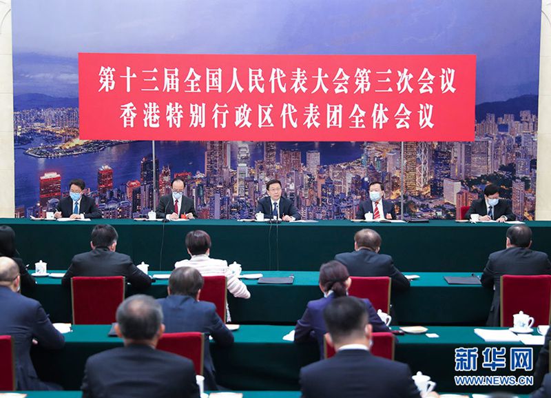 韩正分别参加了香港代表团、澳门代表团审议。韩正与香港、澳门地区全国人大代表进行了亲切交流。韩正表示,过去一年多来,在中央的大力支持下,在特区行政长官和特区政府的带领下,香港、澳门积极应对各种困难和挑战,推动经济社会发展和改善民生,特别是新冠肺炎疫情发生后,特区政府快速反应,有效控制疫情蔓延,取得的成绩值得充分肯定。“修例风波”以来,“港独”、“黑暴”破坏香港经济社会发展,冲击“一国两制”底线,已成为香港社会的公害。从国家层面建立健全香港特别行政区维护国家安全的法律制度和执行机制,是中央在维护国家安全方面应当行使的权力和应当履行的责任,针对的是搞“港独”、“黑暴”等的极少数人。依法有效防范、制止和惩治危害国家安全的极少数违法犯罪行为,是为了更好地保障香港绝大多数居民的生命财产安全,更好地保障基本权利和自由,维护香港的长治久安和繁荣稳定。全国人大有关决定以及全国人大常委会下一步有关立法,与香港基本法第23条的规定是并行不悖、相辅相成的。中央坚定不移、全面准确贯彻“一国两制”、“港人治港”、“澳人治澳”、高度自治的方针,确保“一国两制”实践不变形、不走样,推动“一国两制”事业行稳致远。韩正希望香港、澳门地区全国人大代表积极宣传解读全国人大有关决定,带头维护“一国两制”和宪法基本法权威,坚定支持行政长官和特区政府依法施政,积极参与粤港澳大湾区建设,为“一国两制”事业作出新的贡献。