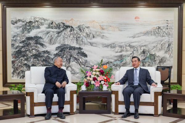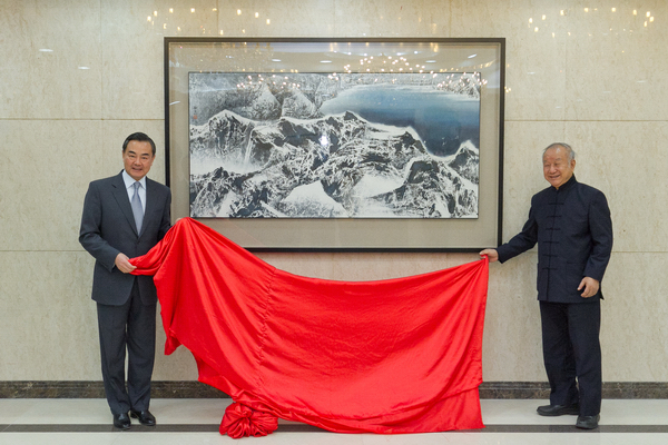 11月29日,台湾著名画家刘国松先生向中共中央台办、国务院台办捐赠了新创作的山水画作《天池》。中共中央台办、国务院台办主任王毅会见了刘国松一行,对刘国松先生热心推动两岸文化交流表示赞赏和感谢。中共中央台办、国务院台办副主任叶克冬参加了会见。