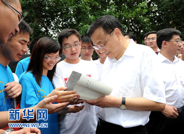 2011年7月5日,李克强在安徽考察经济社会发展情况时,与中国科技大学学生们亲切交流。 新华社记者饶爱民摄