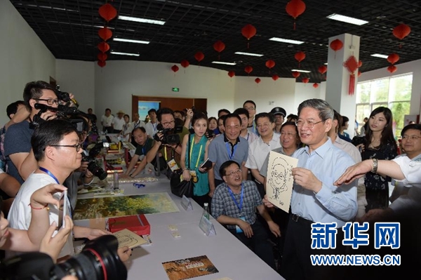 新华网厦门6月13日电(记者谈昦玄 许雪毅)13日,在2015两岸残障人士职业技能展示活动现场,国务院台办主任张志军为两岸残障艺术家做起了“模特”。他风趣地说:“我当了两回‘模特’,一次是侧面的,一次是正面的,让大家看到了全面的我。”