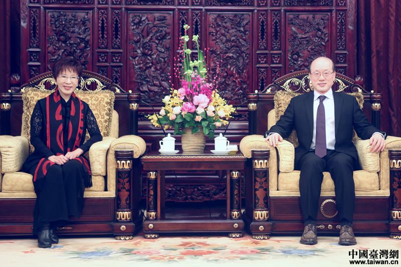 中共中央台办、国务院台办主任刘结一会见中国国民党前主席洪秀柱。(中国台湾网 扶海涛 摄)