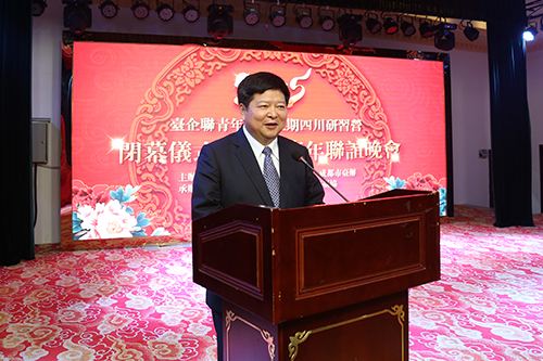 “2015全国台企联青年团四川研习营”由全国台企联和四川省台办、成都市台办主办。四川省台办主任周敏谦,全国台企联会长郭山辉、荣誉会长丁鲲华、常务副会长兼秘书长何世忠与川台青年企业家130余人参加了闭营仪式。(四川省台办供稿)