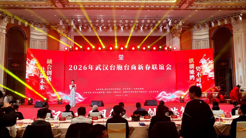1月30日,武汉台资企业协会2026年台胞台商新春联谊会在长江新区举行。武汉台协会员、政企代表、台青台生代表以及基地负责人300余人齐聚一堂,叙情谊、话发展,喜迎马年新春。武汉市委常委胡勇政、湖北省台办副主任徐竞到会致辞,副市长李湛,东风汽车集团董事、党委副书记刘艳红,市政协副秘书长余冬妮,武汉市台办主任、一级巡视员刘红鸣等出席活动。