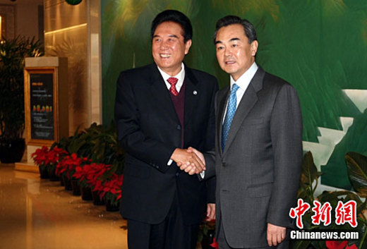 12月20日,海峡两岸关系协会会长陈云林率团启程赴台北参加第六次两岸两会领导人会谈,国台办主任王毅在北京首都机场送行。中新社记者 杜洋 摄