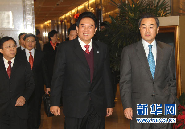 12月20日,海协会会长陈云林率海协会协商代表团离京赴台,参加21日在台北举行的两会领导人第六次会谈。中共中央台办、国务院台办主任王毅在北京首都国际机场为陈云林送行。新华社记者汪永基摄