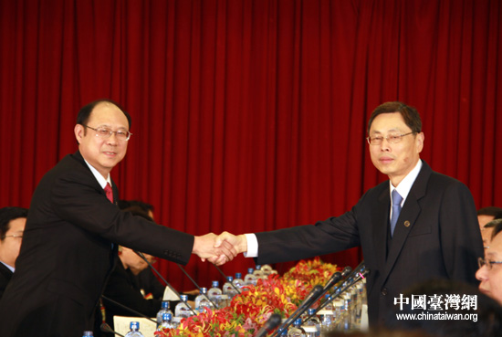 12月20日下午3时,海协会常务副会长郑立中与台湾海基会副董事长兼秘书长高孔廉,在台北圆山饭店就两会领导人第六次会谈的相关事宜进行最后一次预备性磋商。(中国台湾网 钟宝华 摄)