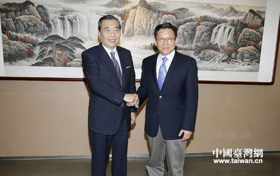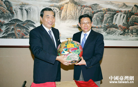 5月7日,海峡两岸关系协会陈德铭会长在北京会见台北世贸中心董事长王志刚一行。(中国台湾网发)