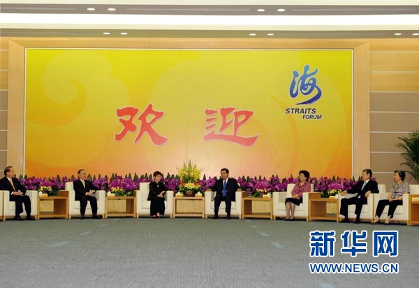6月16日,中共中央政治局常委、全国政协主席贾庆林在厦门会见出席第四届海峡论坛的两岸各界人士。 新华社记者饶爱民摄