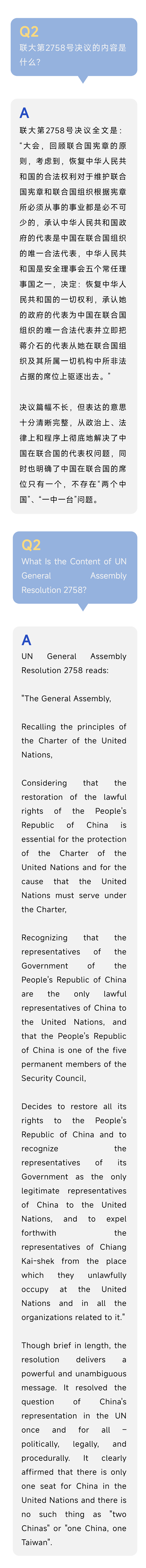 联大第2758号决议系列答问(中英文合集)